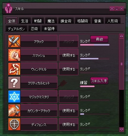 ここからしばらくは、このスキルを上げることに専念していきます。