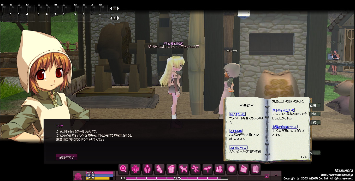 クエストの報酬を受け取ると、紡織スキルが習得できます。