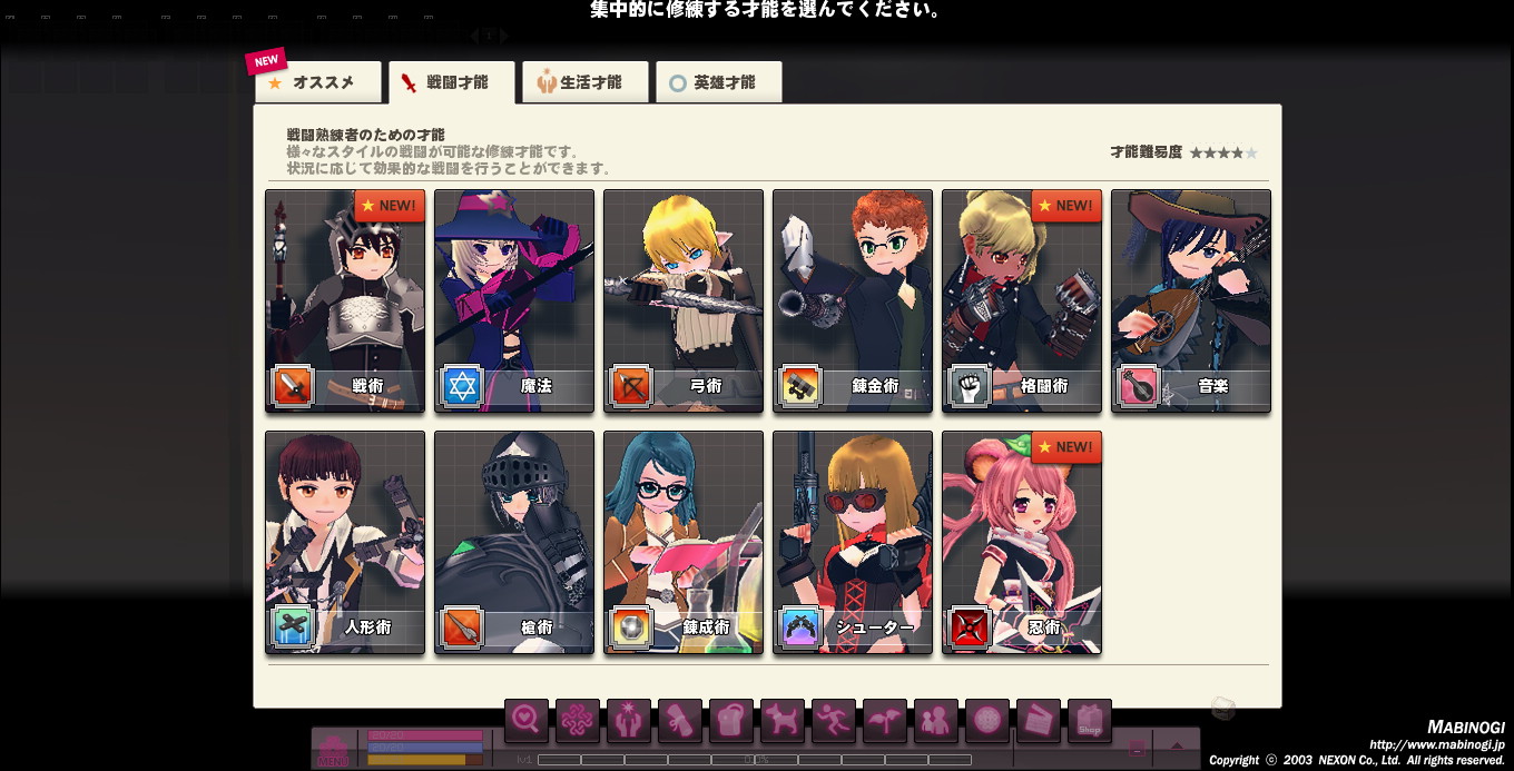 戦闘が大好きな人は戦術から、まったり生活をしてみたい人は好きな生産スキルを選択してみるのもありです。