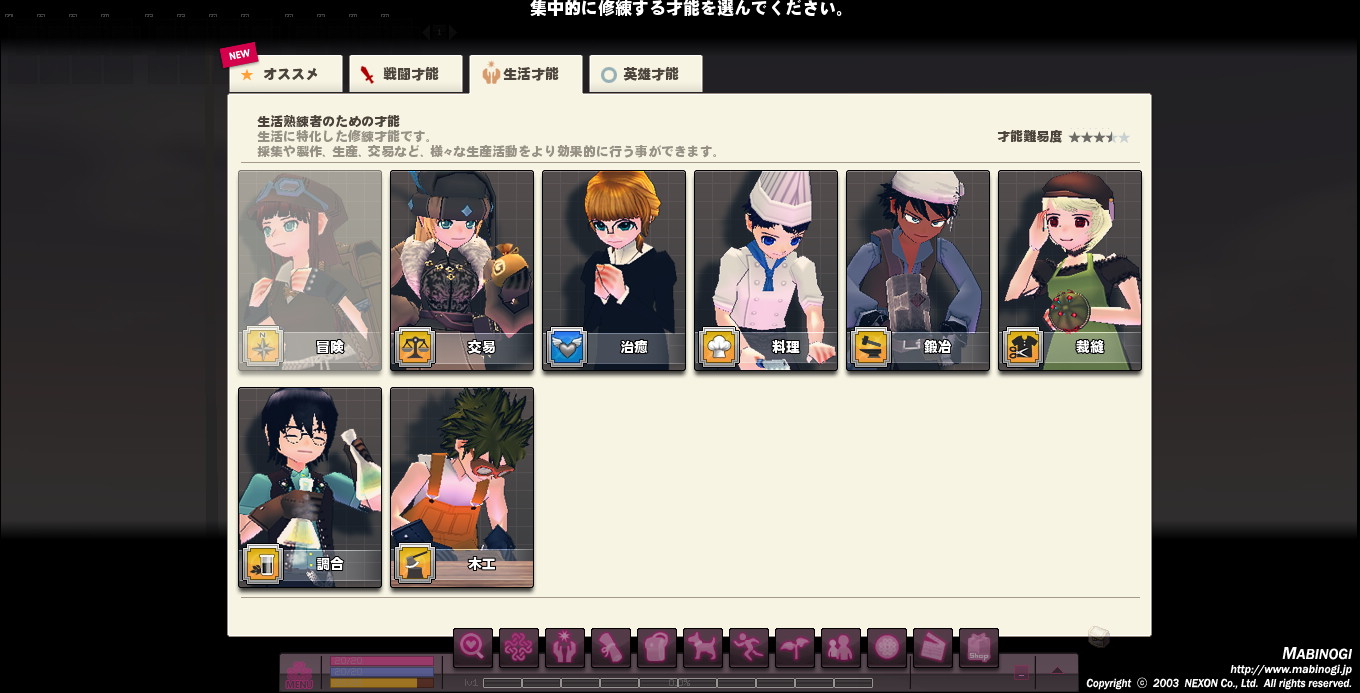 マビノギの面白い所は、生活才能が細かくて充実しているところかな?