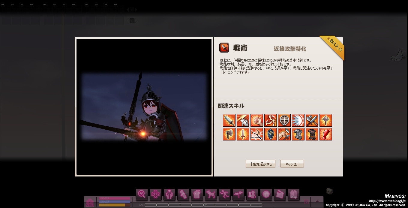 才能をクリックすると、かっこいいムービーと一緒にその才能の説明と、合っているスキルが表示されます。