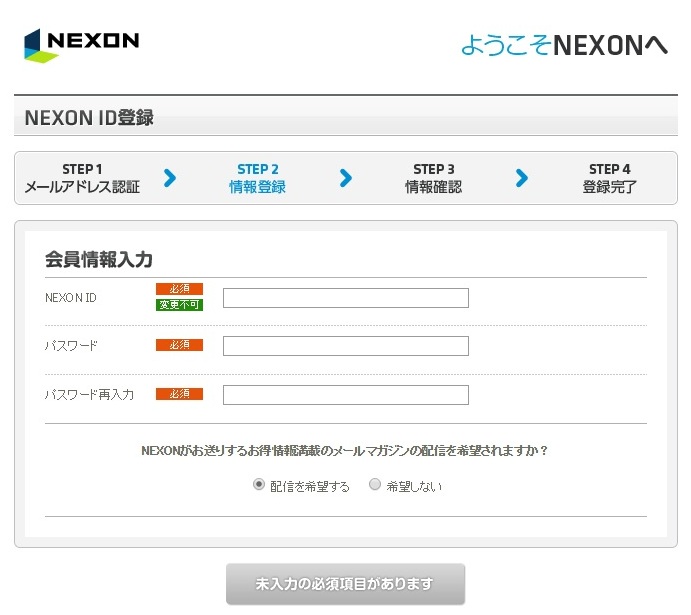 ネクソンIDの登録