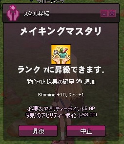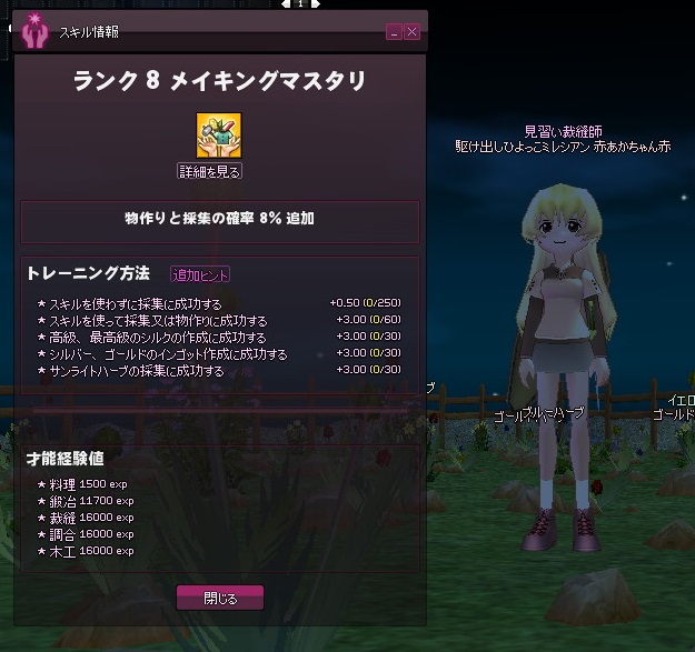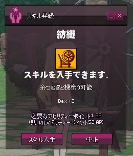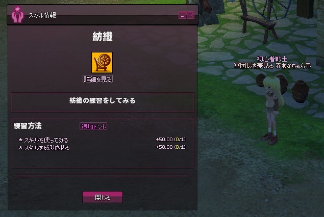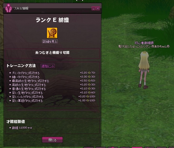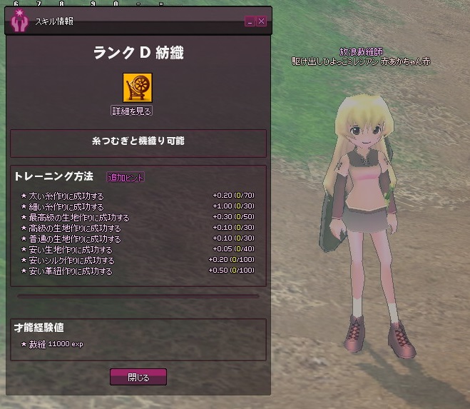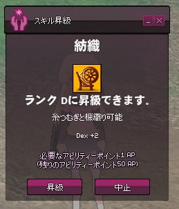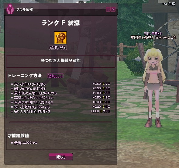 メイキングマスタリがそこそこ上がってきたところで、紡織修練も再開してみます。