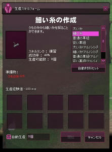 作るものを細い糸にして、枠の中に蜘蛛の糸をクリックドロップ、もしくは自動材料セットを選びます。