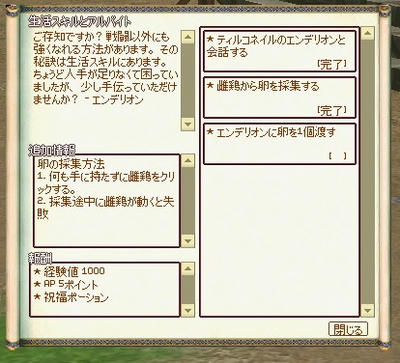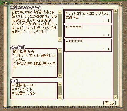 クエストの報酬を受け取ると、紡織スキルが習得できます。
