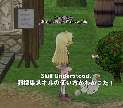無事卵を奪えると、卵採取スキルの使い方を習得します。