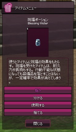 祝福ポーションを使用して、祝福をかけたいアイテムを選択します。