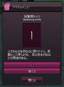 購入した採集用ナイフを装備します。