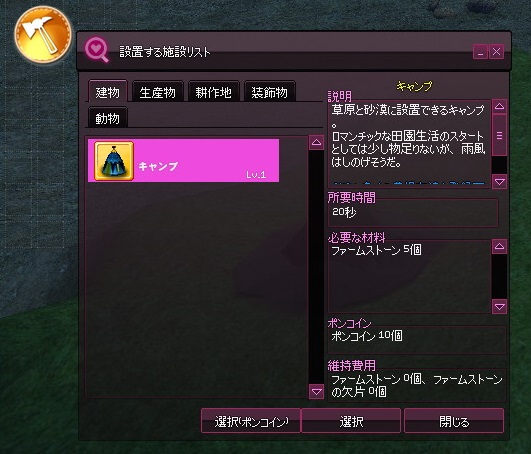 ファームストーンが10個くらい採れたら、キャンプが設置できます。